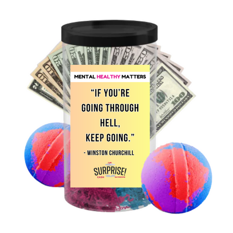 $29.99Unit price /UnavailableIF YOU'RE GOING THROUGH HELL. KEEP GOING - WINTSON CHURCHILL | MENTAL HEALTH CASH BATH BOMBS