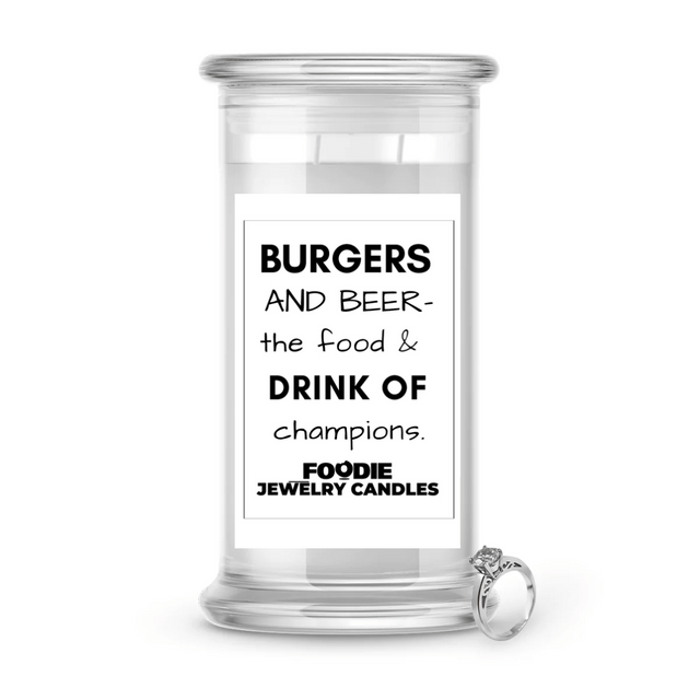 Burgers and Beer- the food & Drink of Campions | Foodie Jewelry Candles is backordered and will ship as soon as it is back in stock.