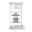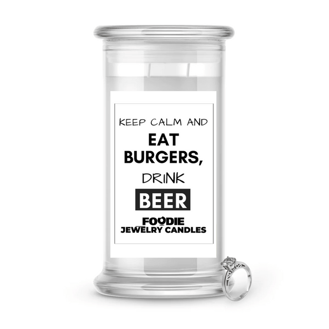 Keep Clam and Eat Burgers, Drink Beer | Foodie Jewelry Candles