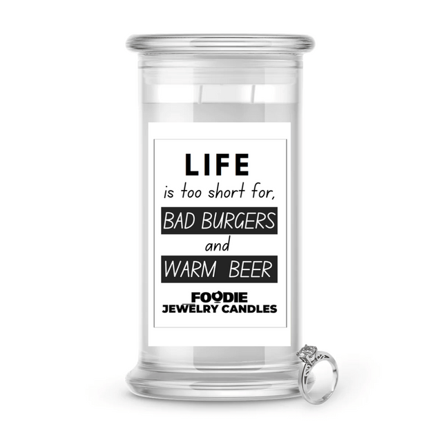 Life is too short for, Bad Burgers and Warm beer | Foodie Jewelry Candles