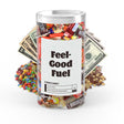 Fuel up the fun. Feel-Good Fuel Cash Candy is a fun, feel-good cash candy tube made to power your day with sweetness and good vibes. Each clear tube measures approximately 6 inches tall and 3 inches wide and is filled with nearly half a pound of candy, delivering a satisfying boost whenever you need it.