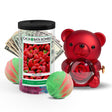 This bundle includes one Romantic Red Rose Cash Surprise Bear and a 2 Pack of Jumbo 7.5 oz Cash Bath Bombs in our Strawberry Fields scent. Each bath bomb contains a real $2 bill inside, and the bear also includes a real $2 bill — for a total of $6 guaranteed cash in every bundle.
