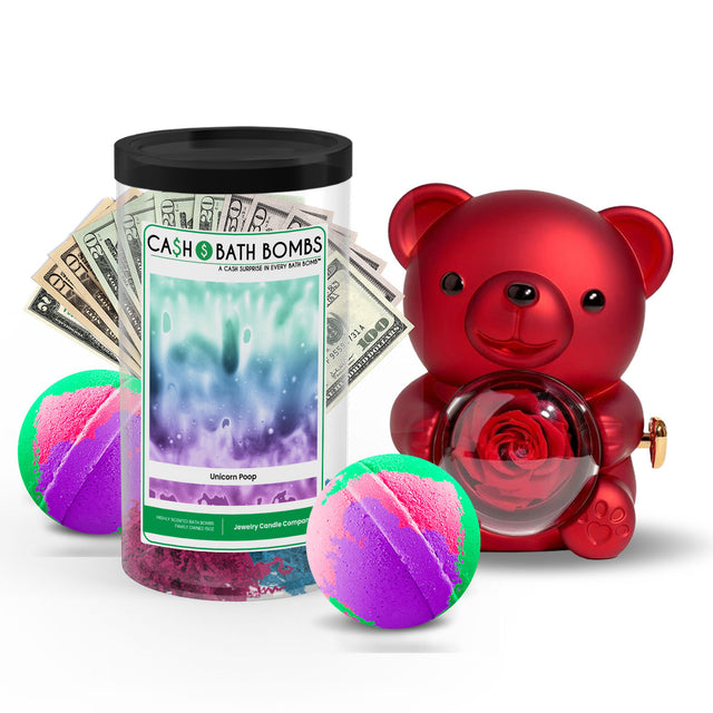 Rose Cash Surprise Bear + Jumbo Cash Bath Bomb 2 Pack – Unicorn Poop