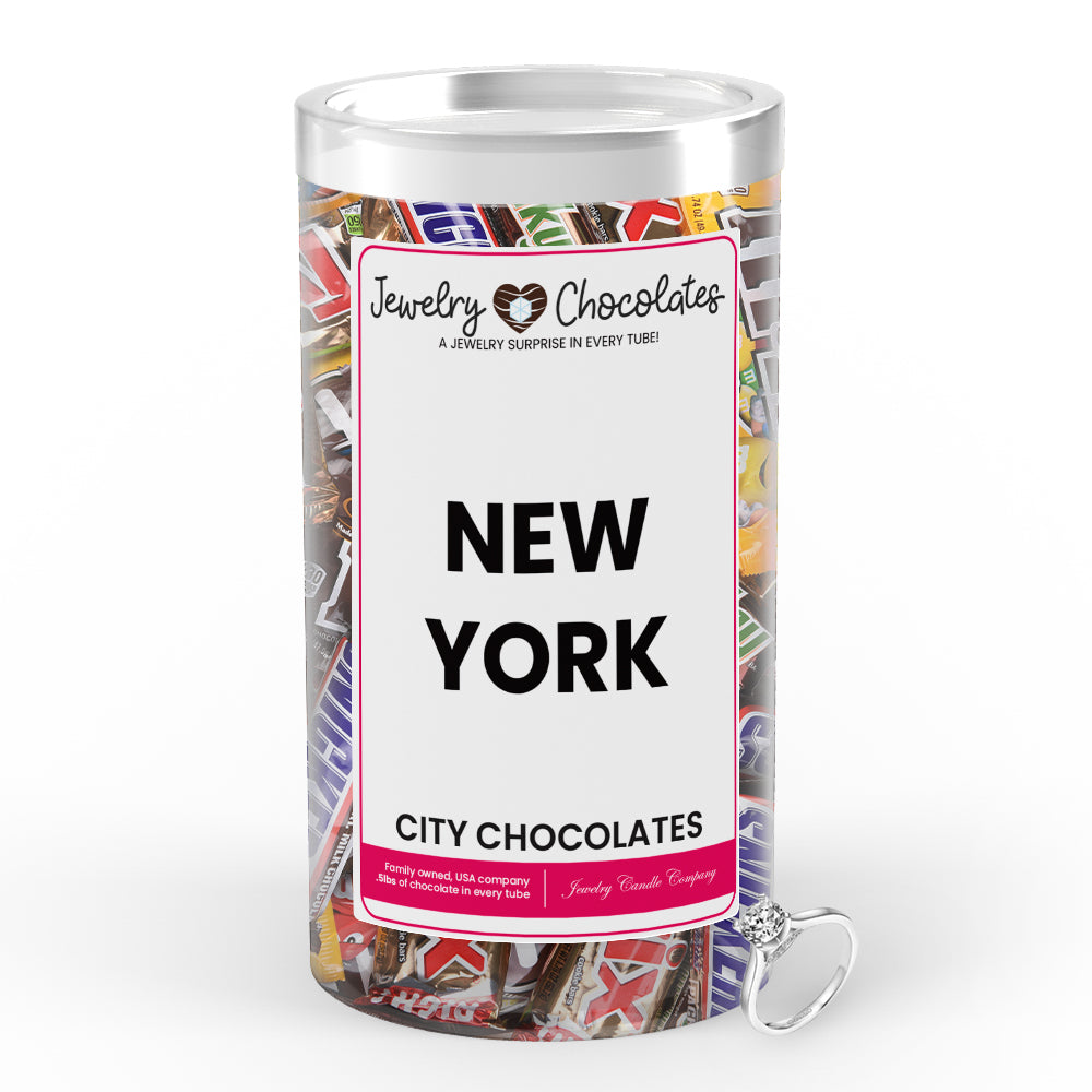 Show love for your city with our brand new City Jewelry Chocolates! City Jewelry Chocolates is a fun new gift item we have created to celebrate where you are from in a really cute tube of Chocolates. Each City Jewelry chocolates tube comes with over half a pound of Chocolates inside and a Jewelry Surprise hidden inside every tube of City Chocolates! Your Jewelry Surprise has a minimum value of $10 and there is a second chance within every tube to find a GOLDEN TICKET with a SECOND surprise piece of jewelry valued up to $7500!