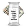 A good burger is like a warm hug for yiur tummy | Foodie Cash Candles