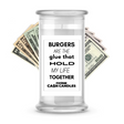 Burgers are the glue that hold my life together | Foodie Cash Candles is backordered and will ship as soon as it is back in stock.