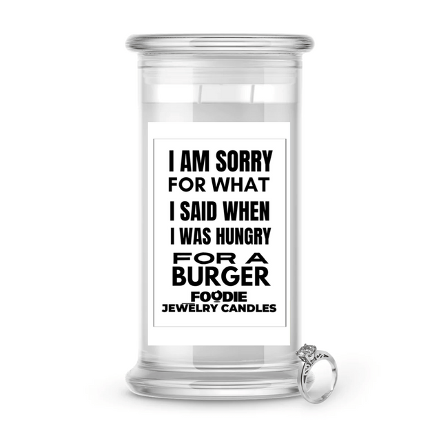 I am sorry for what I said when I was hungry for a burger | Foodie Jewelry Candles is backordered and will ship as soon as it is back in stock.