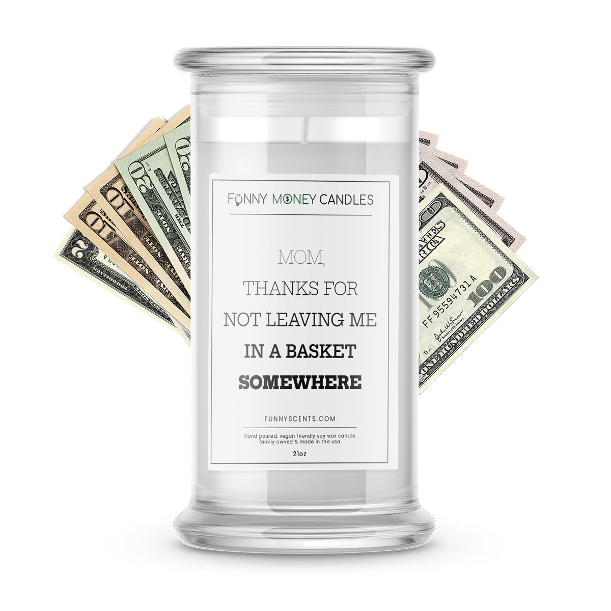 Mom, Thanks For Not Leaving me in a Basket Somewhere Money Funny Candles