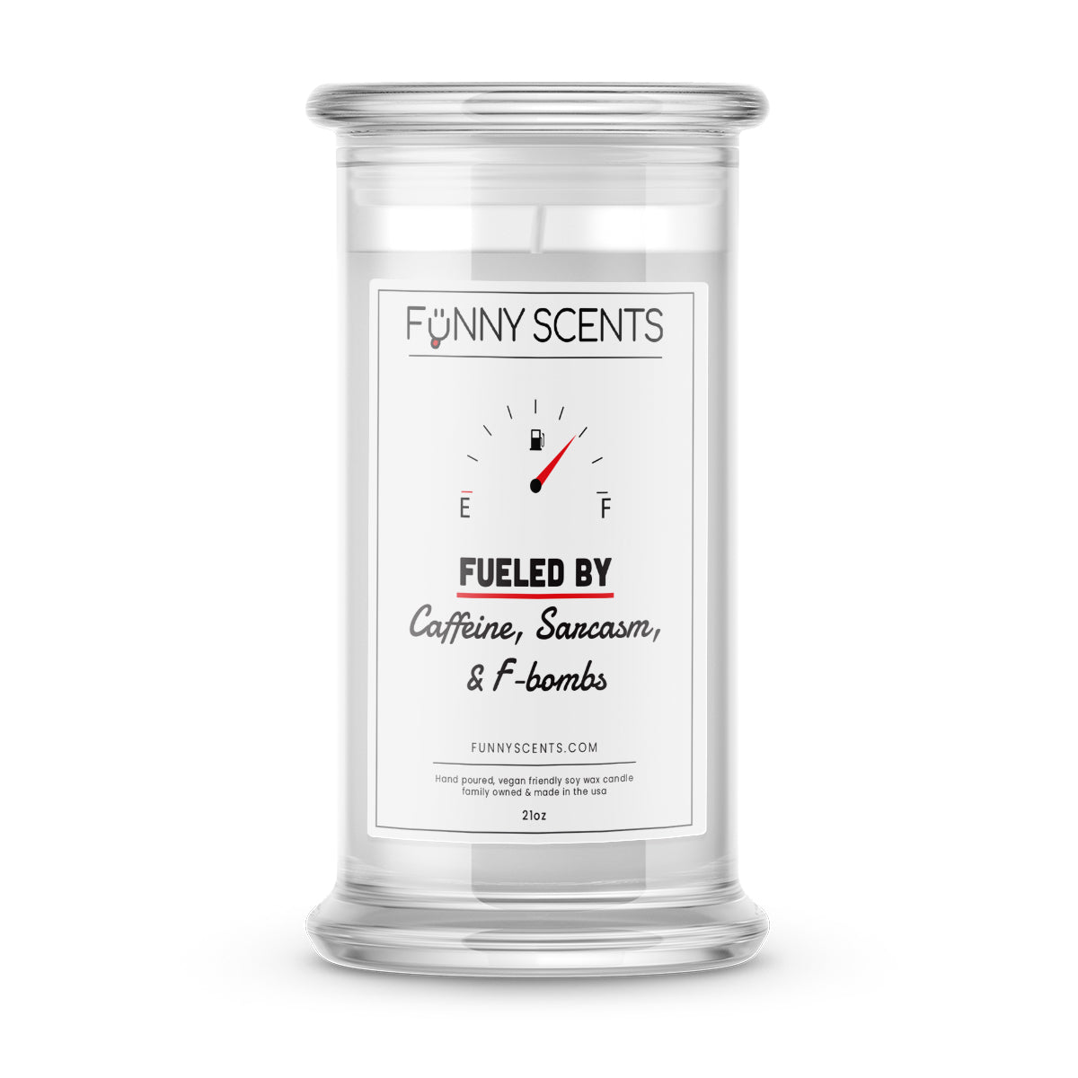 Fueled By Caffeine Sarcasm and f-bombs Funny Candles