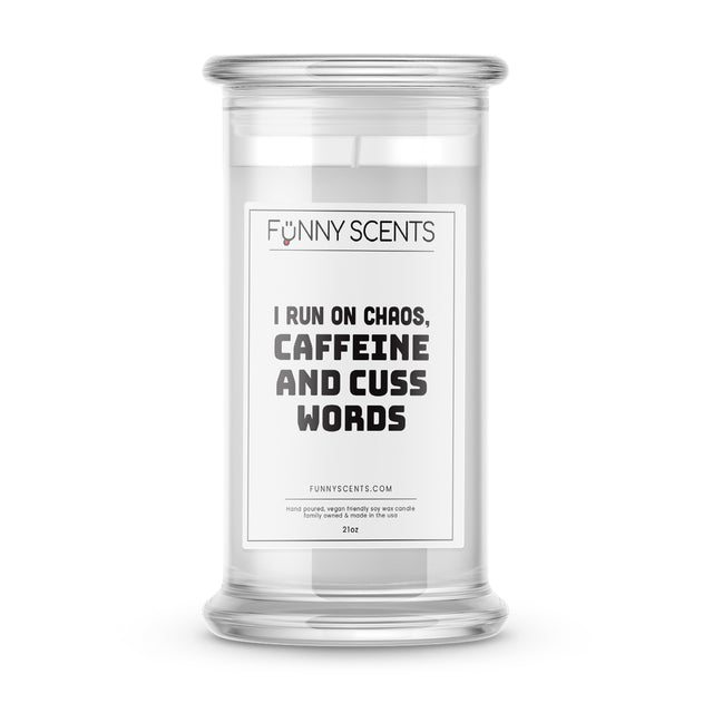 I Run on Chaos, Caffeine and Cuss Words Funny Candles