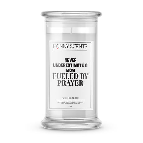 Never Underestimate a mom Fueled by Prayer Funny Candles