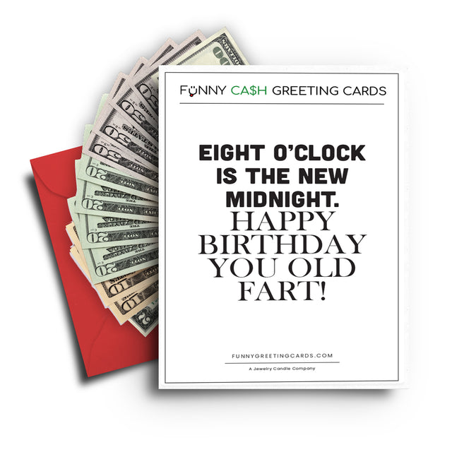Eight O'clock is the new midnight. Happy Birthday You Old Fart Funny Cash Greeting Cards