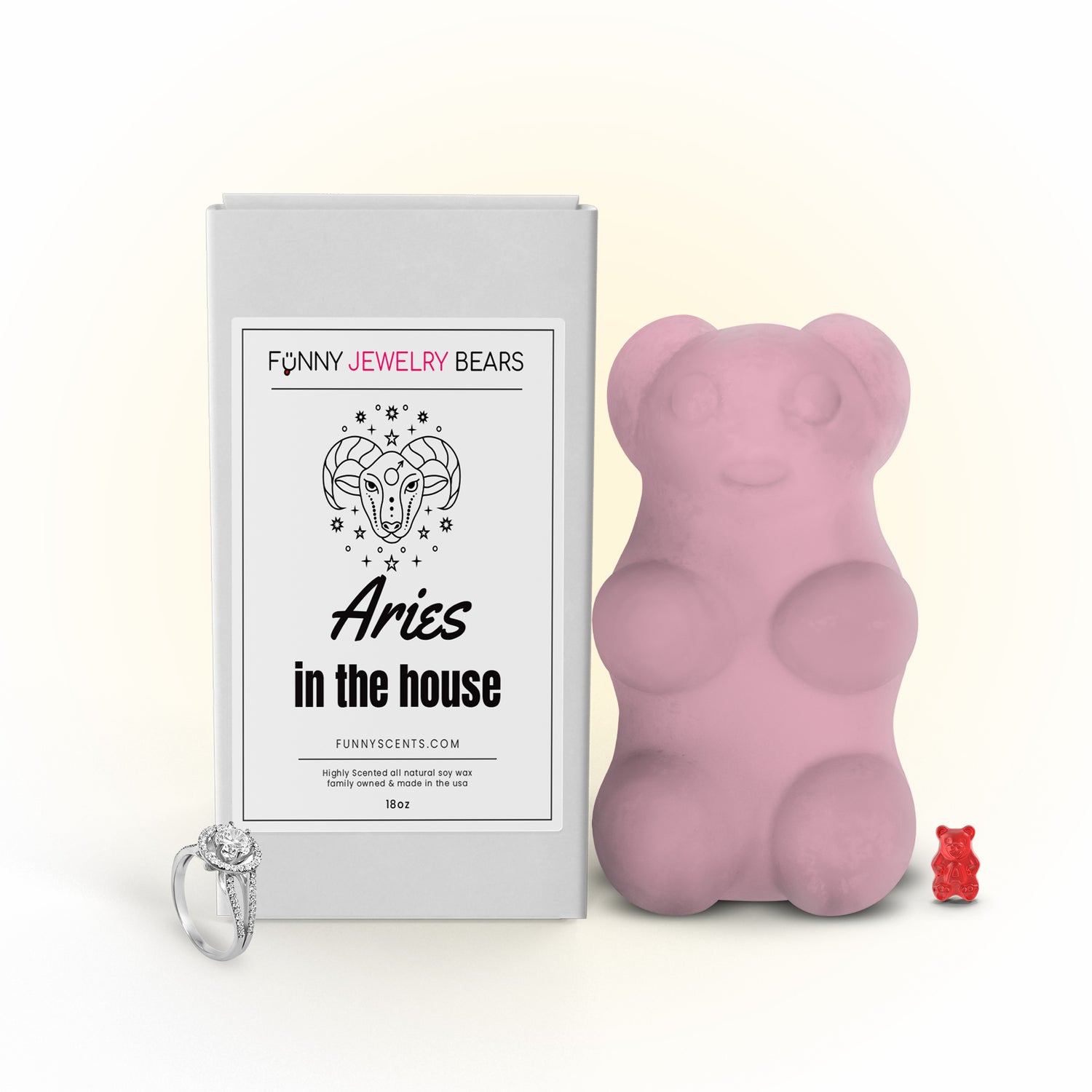 What is a GIANT Funny Jewelry Bear Wax Melt? Funny Jewelry Bears Wax Melts are the world's LARGEST gummy bear shaped wax melts that come in funny themed boxes that are sure to bring lots of laughs to you and whomever you gift them to and have a jewelry surprise inside the actual bear! They not only smell amazing when melting on your wax melter but they have a beautiful jewelry surprise inside for you to wear and adore. You may choose between a ring, necklace, bracelet or pair of earrings to get inside your Funny Jewelry Bears!