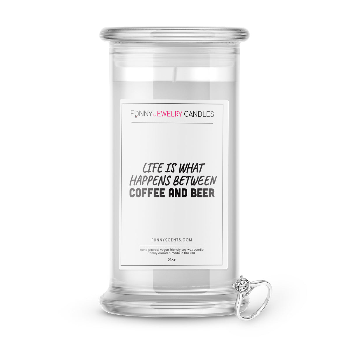 Life is what happens between coffee and beer Jewelry Funny Candles