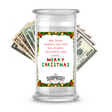 MAY SANTA SURPRISE YOU WITH LOTS OF GIFTS, CHOCOLATES, AND CANDY. MERRY CHRISTMAS CASH CANDLE