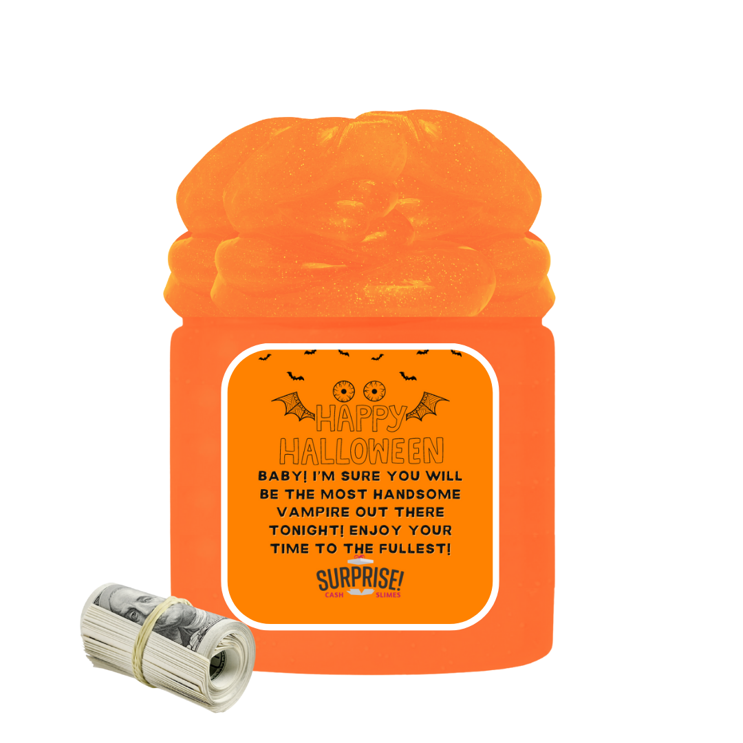 BABY! I'M SURE YOU WILL BE THE MOST HANDSOME VAMPIRE OUT THERE TONIGHT! ENJOY YOUR TIME TO THE FULLEST! HALLOWEEN CASH SLIME