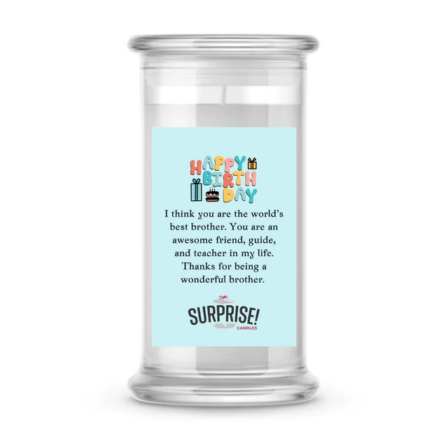 I THINK YOU ARE THE WORLD'S BEST BROTHER, YOU ARE AN AWESOME FRIEND, GUIDE AND TEACHER IN MY LIFE. THANKS FOR BEING A WONDERFUL BROTHER. HAPPY BIRTHDAY CANDLE is backordered and will ship as soon as it is back in stock.