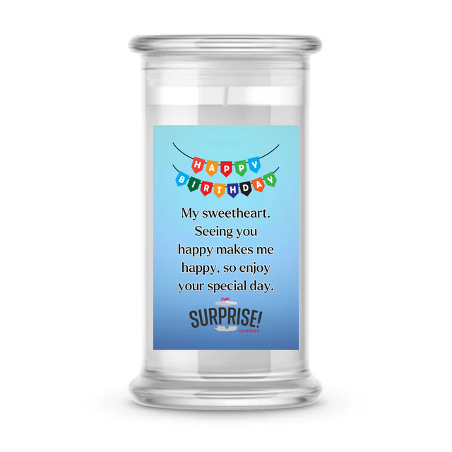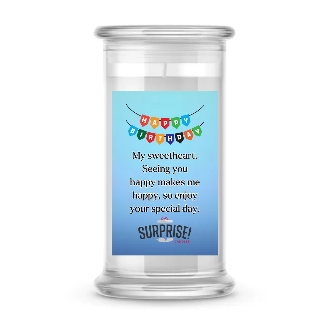 MY SWEETHEART SEEING YOU HAPPY MAKES ME HAPPY, SO ENJOY YOUR SPECIAL DAY. HAPPY BIRTHDAY CANDLE