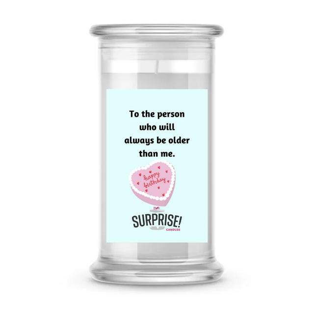 TO THE PERSON WHO WILL ALWAYS BE OLDER THAN ME. HAPPY BIRTHDAY CANDLE