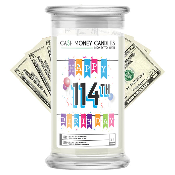 Happy 114th Birthday Cash Candle is backordered and will ship as soon as it is back in stock.
