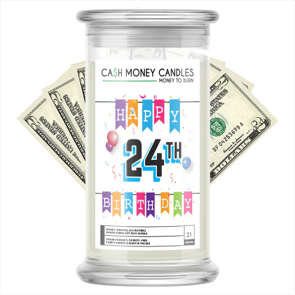 Happy 24th Birthday Cash Candle is backordered and will ship as soon as it is back in stock.