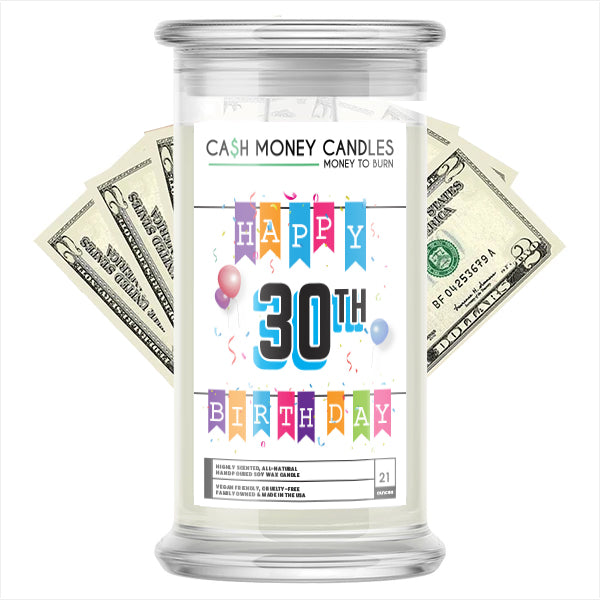 Happy 30th Birthday Cash Candle is backordered and will ship as soon as it is back in stock.