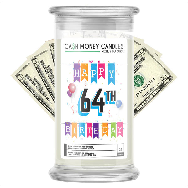 Happy 64th Birthday Cash Candle is backordered and will ship as soon as it is back in stock.