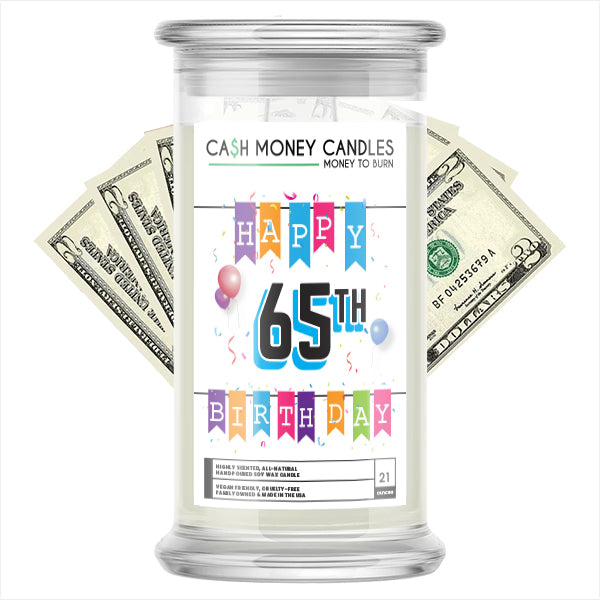 Happy 65th Birthday Cash Candle is backordered and will ship as soon as it is back in stock.