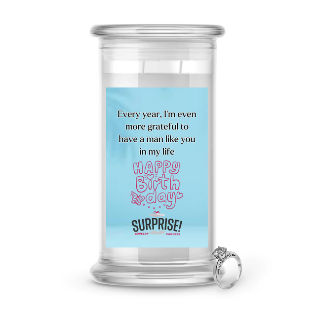 EVERY YEAR, I'M EVEN MORE GRATEFUL TO HAVE A MAN LIKE YOU IN MY LIFE HAPPY BIRTHDAY JEWELRY CANDLE