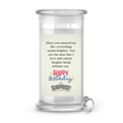 SINCE YOU ENTERED MY LIFE, EVERYTHING SEEMS BRIGHTER. YOU ARE THE MAN THAT I LOVE AND CANNOT IMAGINE BEING WITHOUT YOU. HAPPY BIRTHDAY JEWELRY CANDLE is backordered and will ship as soon as it is back in stock.