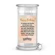 TO SOMEONE WHO TOUCHES EACH LIFE YOU ENTER, SPREADING JOY TO EVERYONE YOU MEET: MAY THE LOVE AND HAPPINESS YOU SHARE WITH OTHERS RETURN TO YOU TENFOLD. I WISH YOU MANY MORE HAPPY BIRTHDAS! HAPPY BIRTHDAY JEWELRY CANDLE is backordered and will ship as soon as it is back in stock.