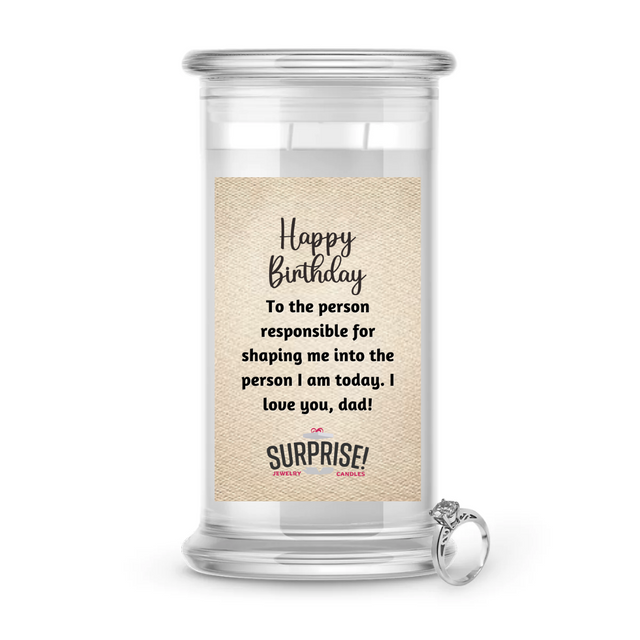 TO THE PERSON RESPONSIBLE FOR SHAPING ME INTO THE PERSON I AM TODAY. I LOVE YOU, DAD! HAPPY BIRTHDAY JEWELRY CANDLE