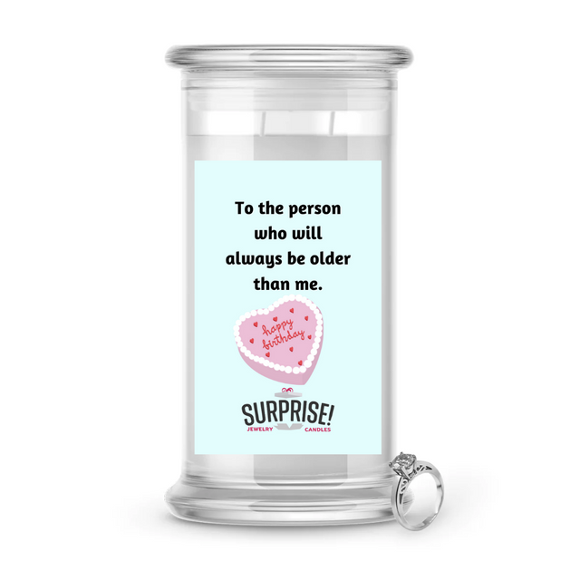 TO THE PERSON WHO WILL ALWAYS BE OLDER THAN ME. HAPPY BIRTHDAY JEWELRY CANDLE