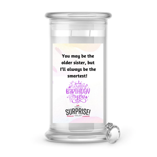 YOU MAY BE THE OLDER SISTER, BUT I'LL ALWAYS BE THE SMARTEST! HAPPY BIRTHDAY JEWELRY CANDLE