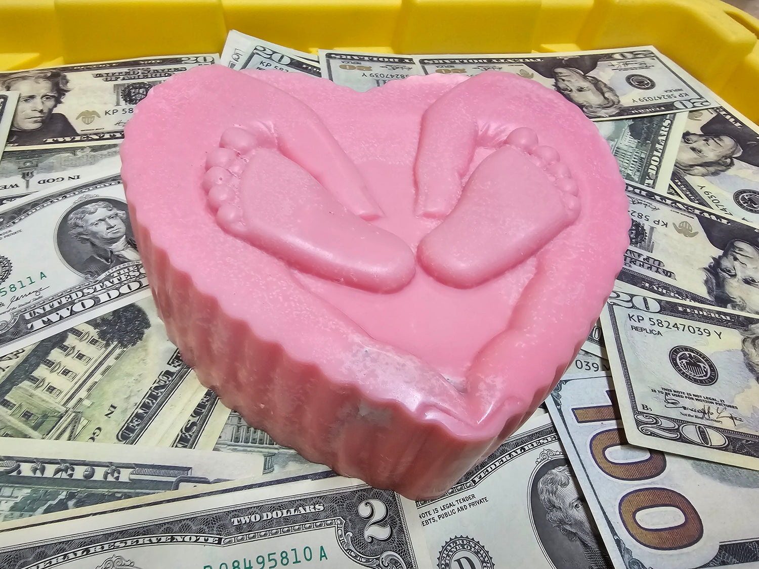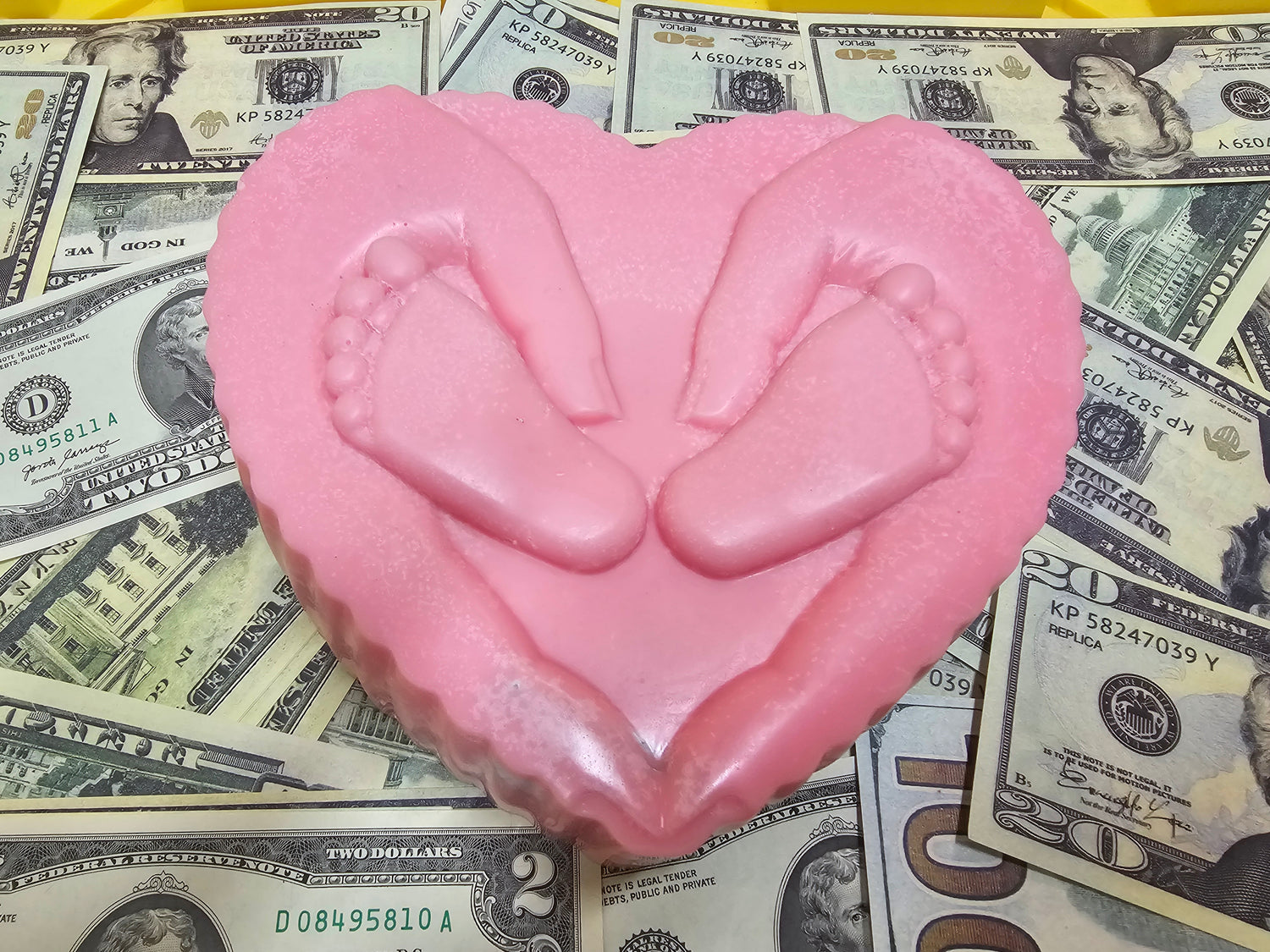 Giant Babies Feet In Mothers Hands Heart Shaped Cash Wax Melt - MOTHER'S LOVE SCENT is backordered and will ship as soon as it is back in stock.