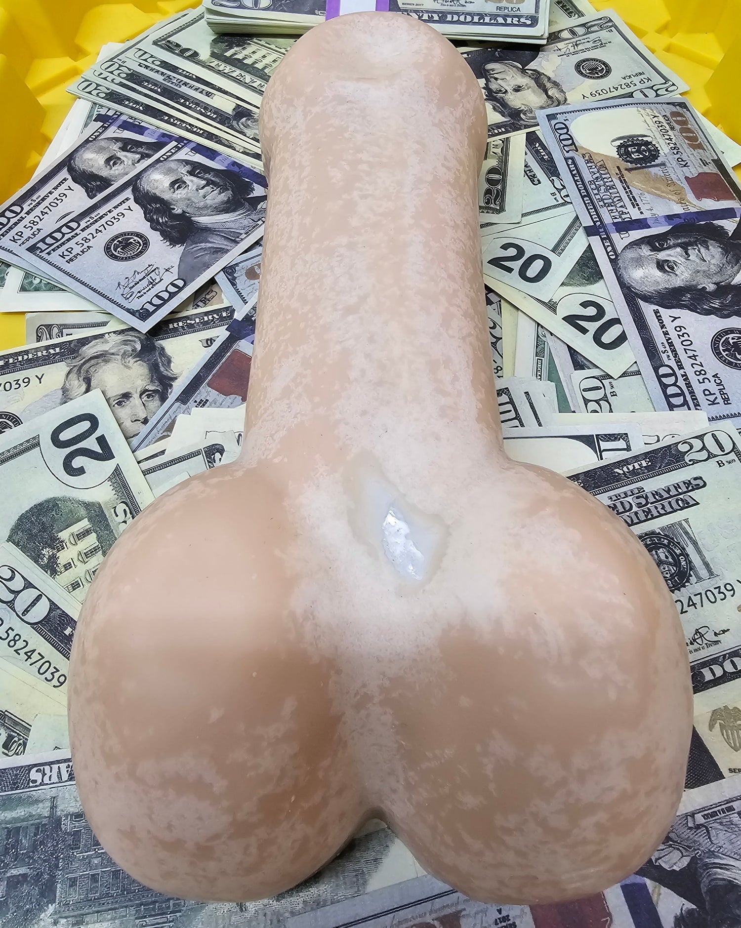 Each Giant Penis Cash Wax Melt contains either real cash, real gold nuggets, or a combination of both, and also comes with a minimum of a real $2 bill inside. Randomized melts can even contain up to $2500 in cash and gold nugget prizes!
