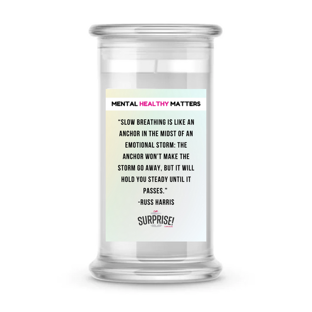 SLOW BEATHING IS LIKE AN ANCHOR IN THE MIDST OF AN EMOTIONAL STORM: THE ANCHOR WON'T MAKE THE STORM GO AWAY, BUT IT WILL HOLD YOU STEADY UNTIL IT PASSES| MENTAL HEALTH CANDLES is backordered and will ship as soon as it is back in stock.