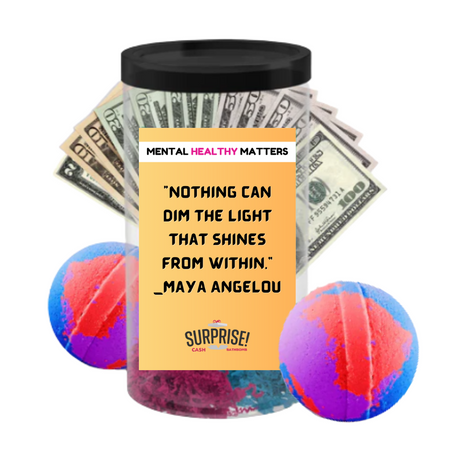 $34.00Unit price /UnavailableNOTHING CAN DIM THE LIGHT THAT SHINES FROM WITHIN - MAYA ANGELOU | MENTAL HEALTH CASH BATH BOMBS