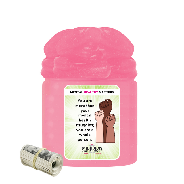 Unleash the power of positivity and self-care while indulging in the thrill of unexpected treasures with our Mental Health Cash Slimes. Let the textures, aromas, and the thrilling possibility of cash prizes uplift your spirits and invigorate your day.