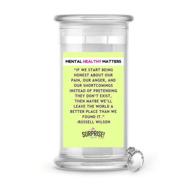 IF WE START BEING HONEST ABOUT OUR PAIN, OUR ANGER, AND OUR SHORTCOMINGS INSTED OF PRETANDING THEY DON'T EXIT, THEN MAYBE WE'LL LEAVE THE WORLD A BETTER PLACE THAN WE FOUND IT | MENTAL HEALTH JEWELRY CANDLES is backordered and will ship as soon as it is back in stock.