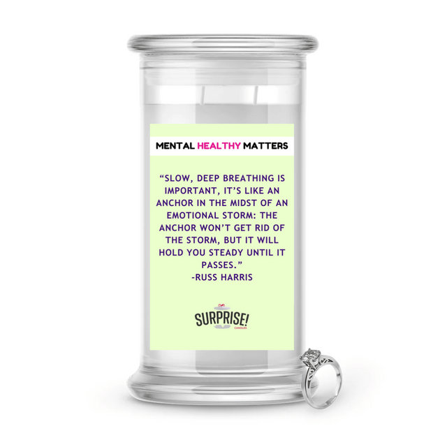 SLOW, DEEP BREATHING IS IMPORTANT, IT'S LIKE AN ANCHOR IN THE MIDST OF AN EMOTIONAL STORM: THE ANCHOR WON'T GET RID OF THE STORM, BUT IT WILL HOLD YOU STEADY UNTIL IT PASSES | MENTAL HEALTH JEWELRY CANDLES is backordered and will ship as soon as it is back in stock.