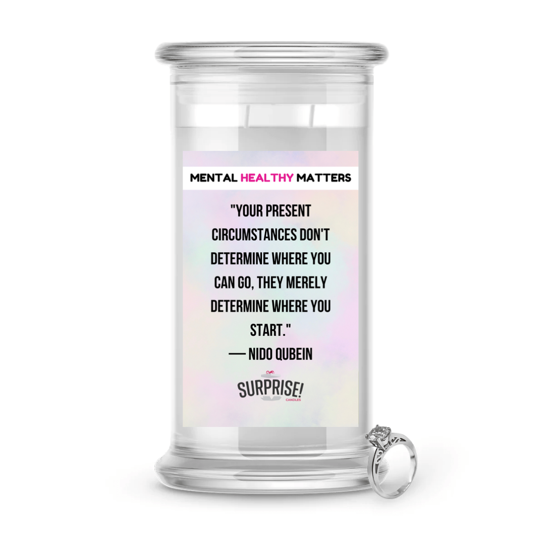 YOUR PRESENT CIRCUMSTANCES DON'T DETERMINE WHERE YOU CAN GO, THEY MERELY DETERMINE WHERE YOU START. | MENTAL HEALTH JEWELRY CANDLES is backordered and will ship as soon as it is back in stock.
