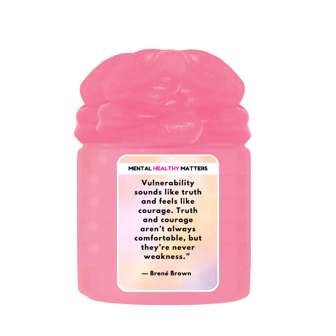 VULNERABILITY SOUNDS LIKE TRUTH AND FEELS LIKE COURAGE. TRUTH AND COURAGE ARE NOT ALWAYS COMFORTABLE, BUT THEY ARE NEVER WEAKNESS | MENTAL HEALTH SLIMES is backordered and will ship as soon as it is back in stock.