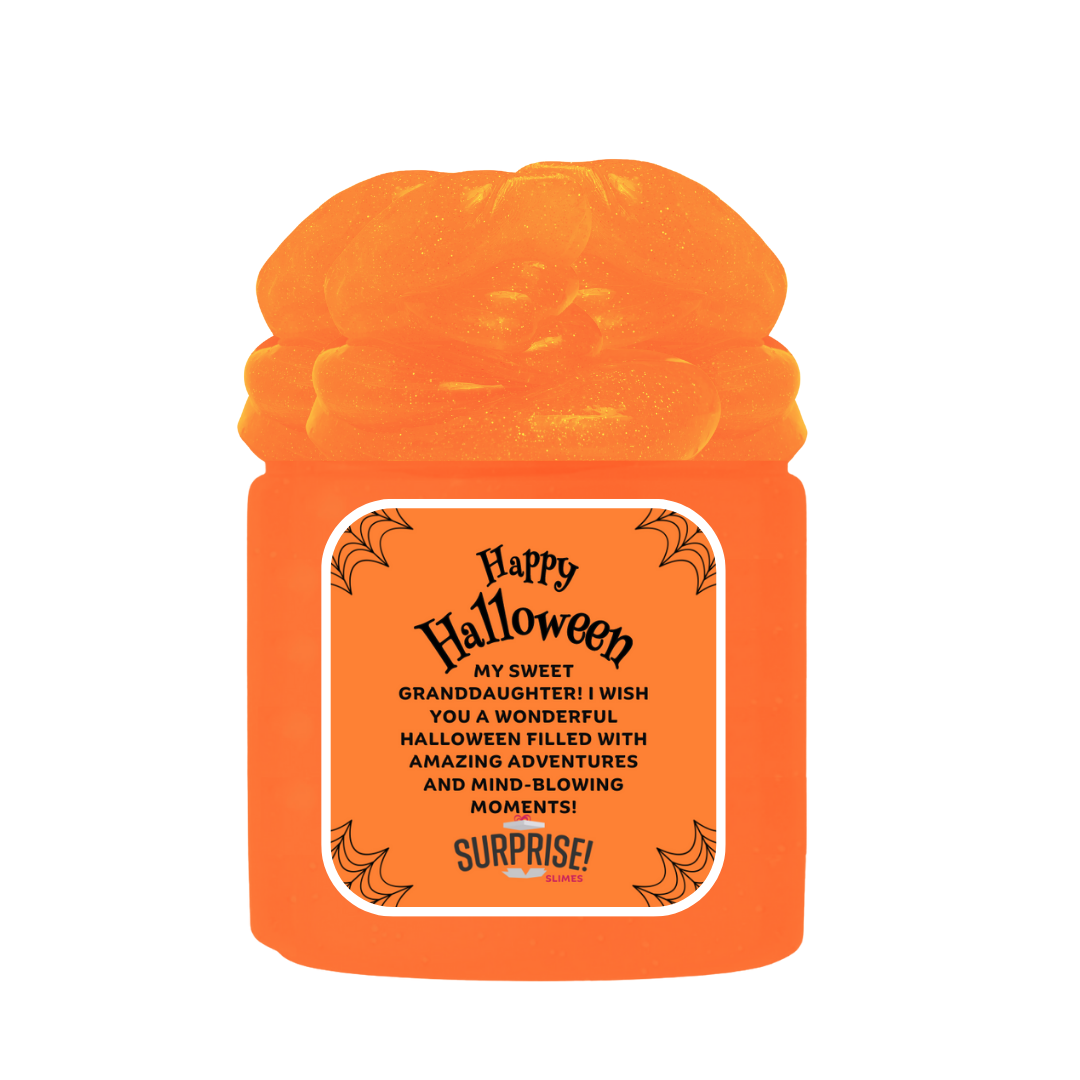 MY SWEET GRANDDAUGHTER! I WISH YOU A WONDERFUL HALLOWEEN FILLED WITH AMAZING ADVENTURES AND MIND-BLOWING MOMENTS! HALLOWEEN SLIME is backordered and will ship as soon as it is back in stock.