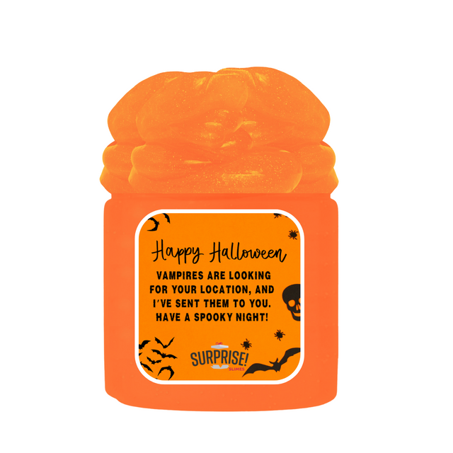 VAMPIRES ARE LOOKING FOR YOUR LOCATION, AND I'VE SEEN THEM TO YOU, HAVE A SPOOKY NIGHT! HALLOWEEN SLIME is backordered and will ship as soon as it is back in stock.
