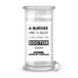 A Burger and a beer a day keeps the doctor away | Foodie Jewelry Candles is backordered and will ship as soon as it is back in stock.