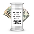 A Foodie's Motto: Eat, Drink and Be Bacony | Foodie Cash Candles is backordered and will ship as soon as it is back in stock.