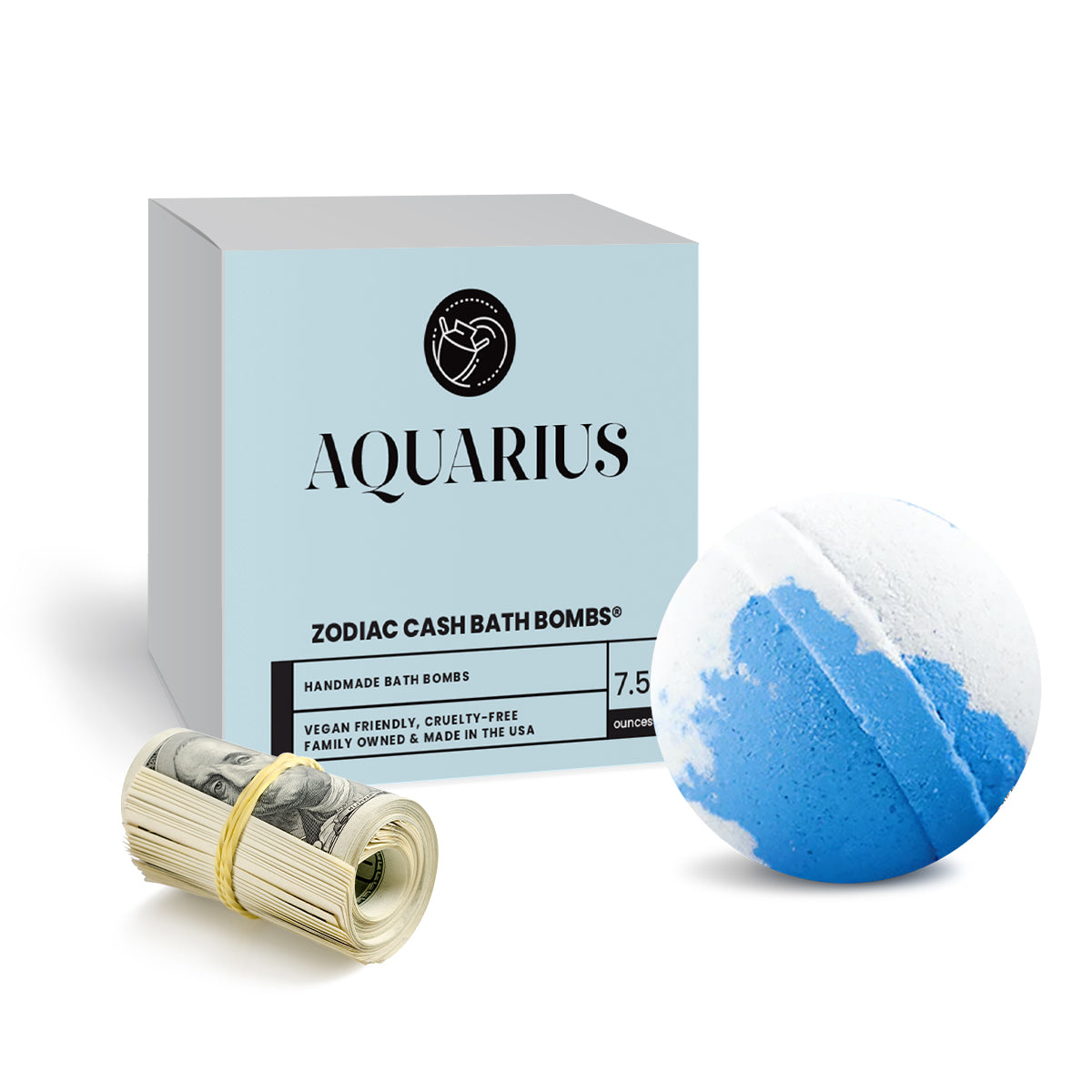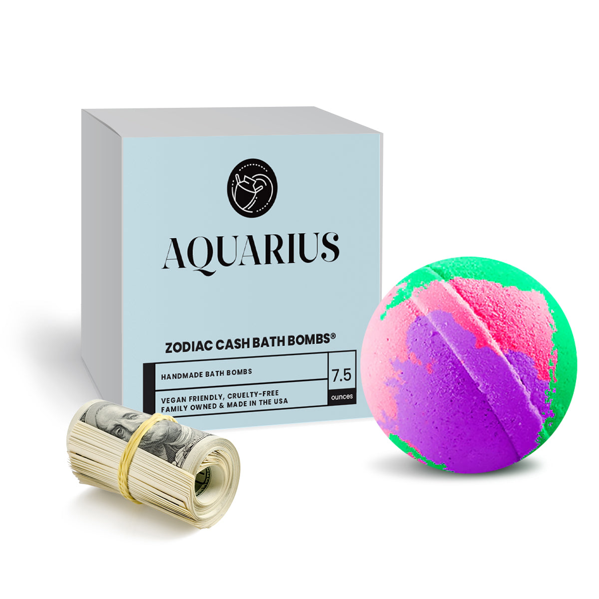 Our handmade in the USA Aquarius Zodiac Cash Bath Bombs is a unique and delightful treat for astrology enthusiasts and anyone who loves a fun surprise. Each bath bomb is crafted with the finest ingredients, including 100% pure essential oils, food grade citric acid, baking soda, Epsom salt, and cold-pressed plant oils. This combination of natural ingredients makes our Zodiac Cash Bath Bomb not only fun but also healthy and safe, as they are free from harmful chemicals like SLS, parfum, and parabens.