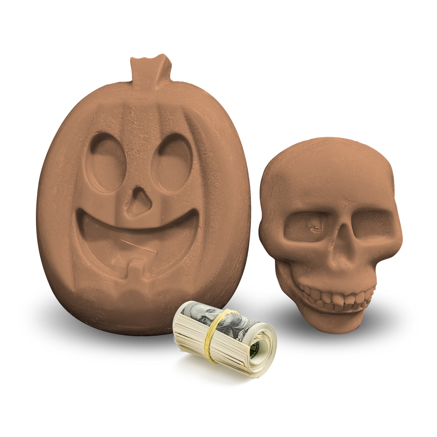 - **Giant Skull Design:** Complementing the pumpkin is our Giant Skull Cash Wax Melt. Weighing around a pound, this menacing yet fun design will send shivers down your spine as it melts to reveal hidden cash. Perfect for creating a spooky atmosphere, this skull also guarantees at least a $2 bill inside.