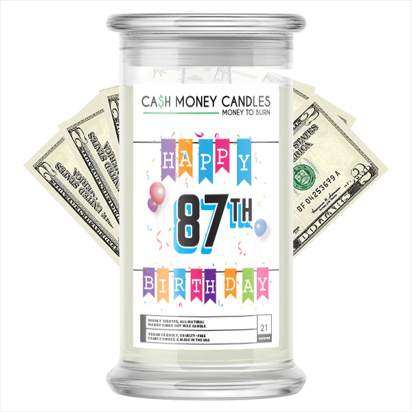 Happy 87th Birthday Cash Candle is backordered and will ship as soon as it is back in stock.